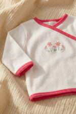 Obálková košile se zapínáním na patentky, zdobená obrázkem. Vyrobeno ze 100% bavlny. Velmi vhodné pro oblékání novorozence.