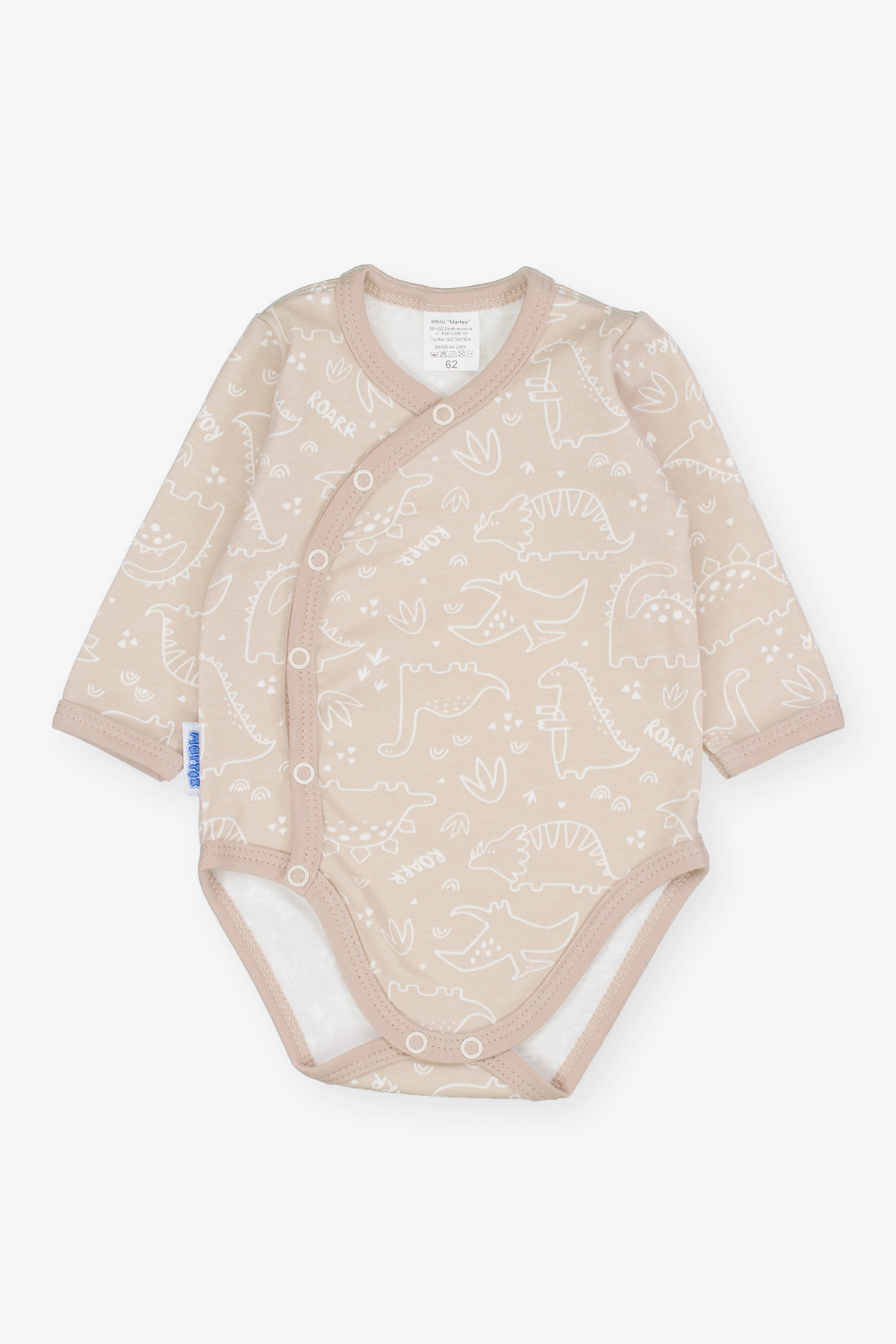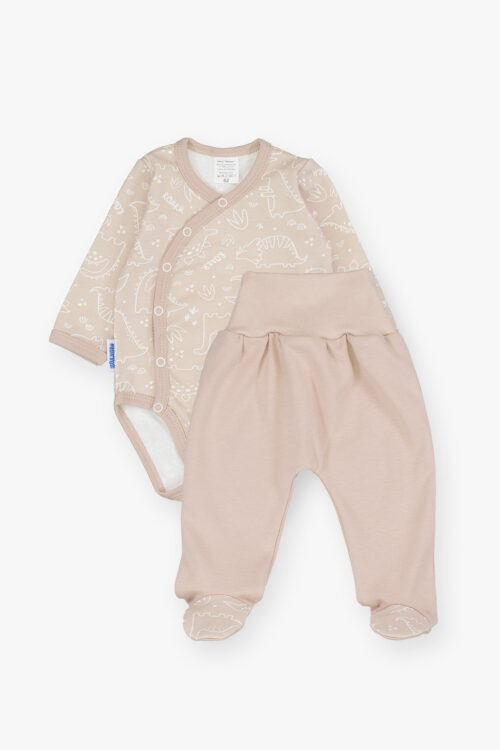 Souprava se skládá z celorozepínacích bodyček, velmi pohodlných v prvních měsících miminka, a polobody, které se snadno oblékají. Celý je vyroben ze 100% jemné, barevné bavlny. tato sbírka obsahuje dupačky, kaftan, dupačky a tlapky