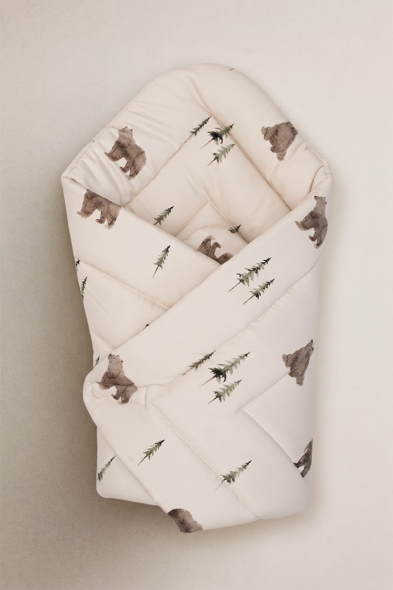 Minkštas kūdikio vokelis su žaviu miško lokių ir medžių motyvu, išlaikytas švelnioje, natūralioje spalvų gamoje. Gaminys iš malonių ir odai saugių medžiagų užtikrina jūsų mažyliui šilumą, komfortą ir saugumo jausmą nuo pirmųjų gyvenimo akimirkų. Sustiprinta konstrukcija padeda tinkamai palaikyti naujagimį, o patogūs raišteliai leidžia pritaikyti apgaubimą pagal kūdikio poreikius. Puikiai tinka miegui, maitinimui ir kasdienei priežiūrai.