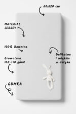 Delikatne , miękkie i przyjemne w dotyku prześcieradełko jersey zapewni twojemu dziecku zdrowy i spokojny sen.Prześcieradło wykonane z wysokiej jakości dzianiny własnej produkcji o składzie surowcowym 100% bawełna.Gramatura 160-170 g/m2. Jest praktyczne, wygodne i łatwe w użyciu.Gumka wszyta jest w tunel. Nie wymaga prasowania.