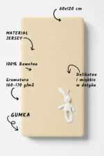 Delikatne , miękkie i przyjemne w dotyku prześcieradełko jersey zapewni twojemu dziecku zdrowy i spokojny sen.Prześcieradło wykonane z wysokiej jakości dzianiny własnej produkcji o składzie surowcowym 100% bawełna.Gramatura 160-170 g/m2. Jest praktyczne, wygodne i łatwe w użyciu.Gumka wszyta jest w tunel. Nie wymaga prasowania.