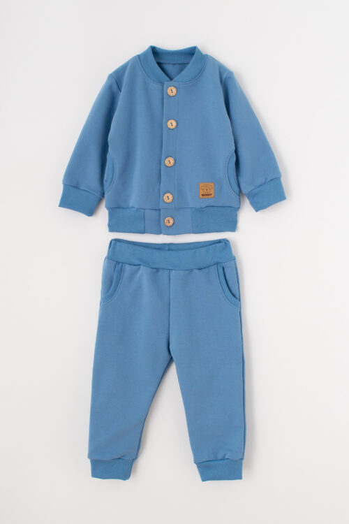 Bluza jak i spodnie mają swobodny krój, nie ograniczający ruchów, dlatego będą idealnym rozwiązaniem na co dzień podczas zabawy czy spacerów. Zestaw posiada ściągacze na rękawach bluzy, nogawkach spodni i w pasie, dzięki czemu nie podciągają się ku górze.