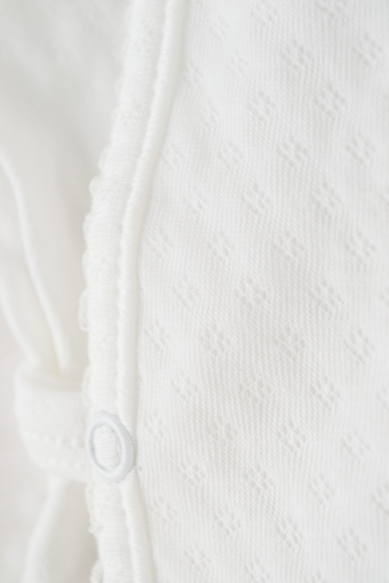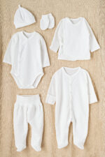 Kompletny, miękki i wyjątkowo delikatny zestaw ubranek dla noworodka, wykonany w 100% z wysokogatunkowej, oddychającej bawełny. Idealny jako pierwsza wyprawka lub prezent dla przyszłych rodziców. Neutralny, biały kolor doskonale pasuje zarówno dla dziewczynki, jak i chłopca.