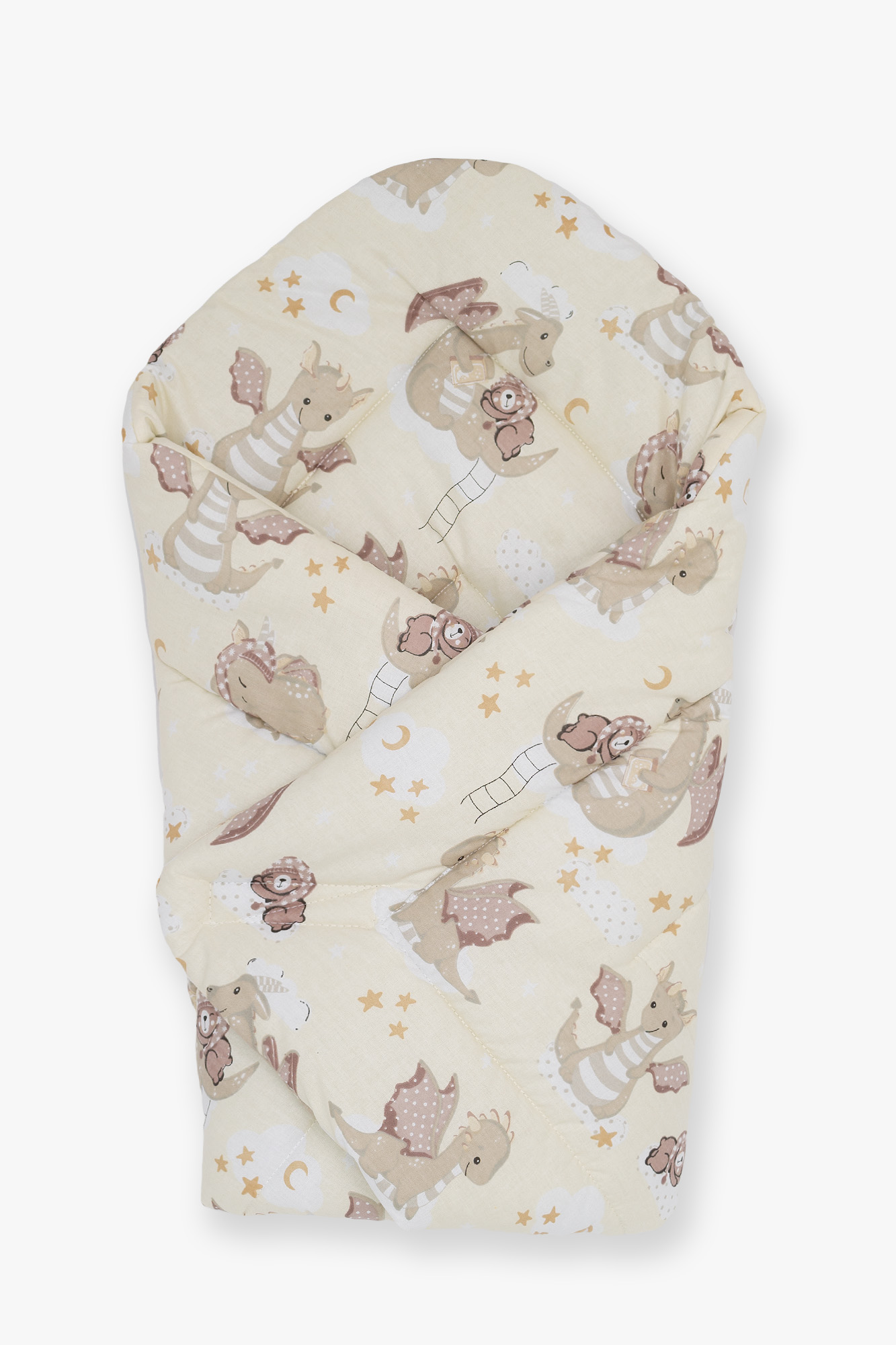 Zapewnia optymalne ciepło i wygodę, otulając dziecko w delikatny sposób.