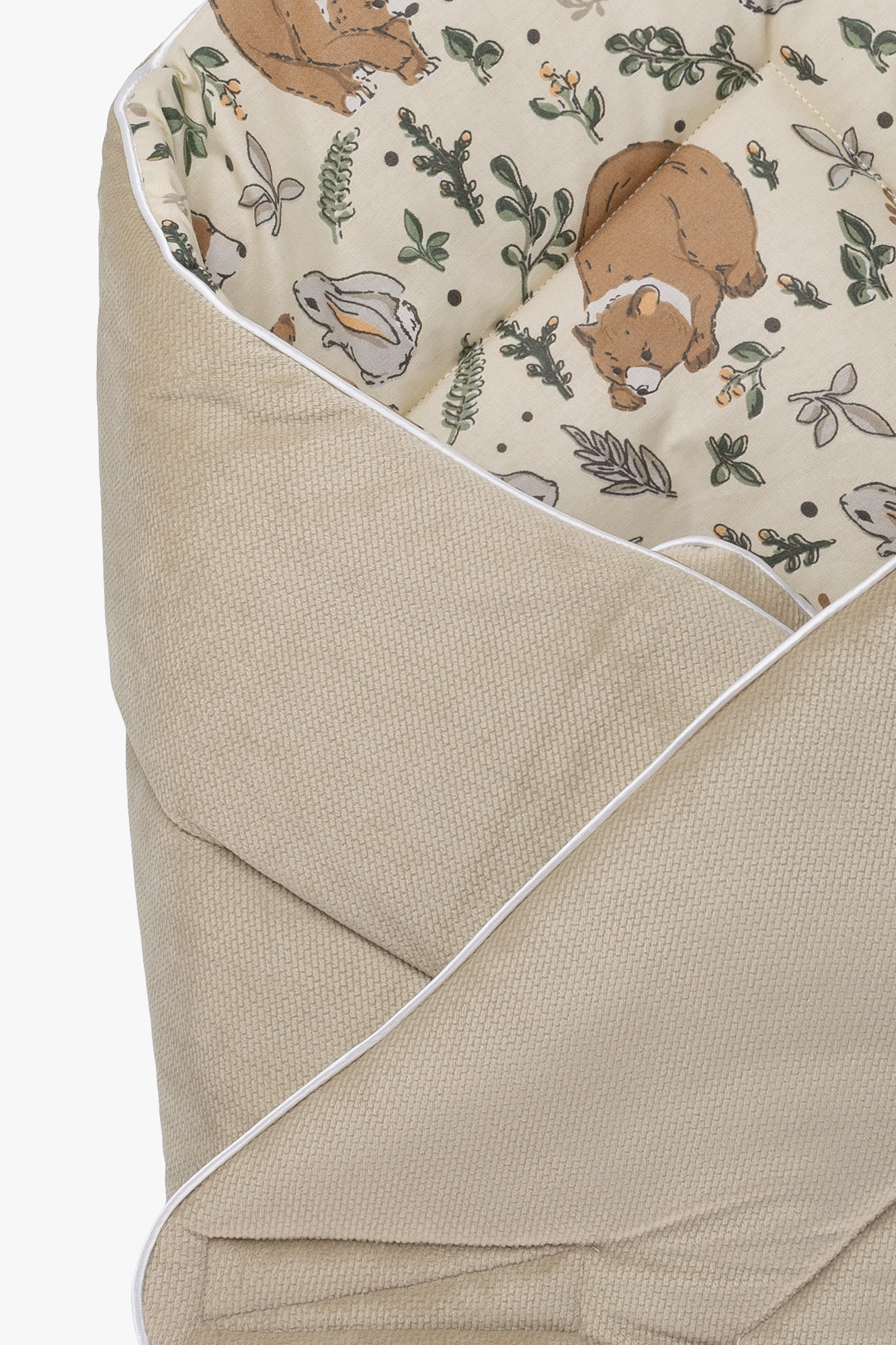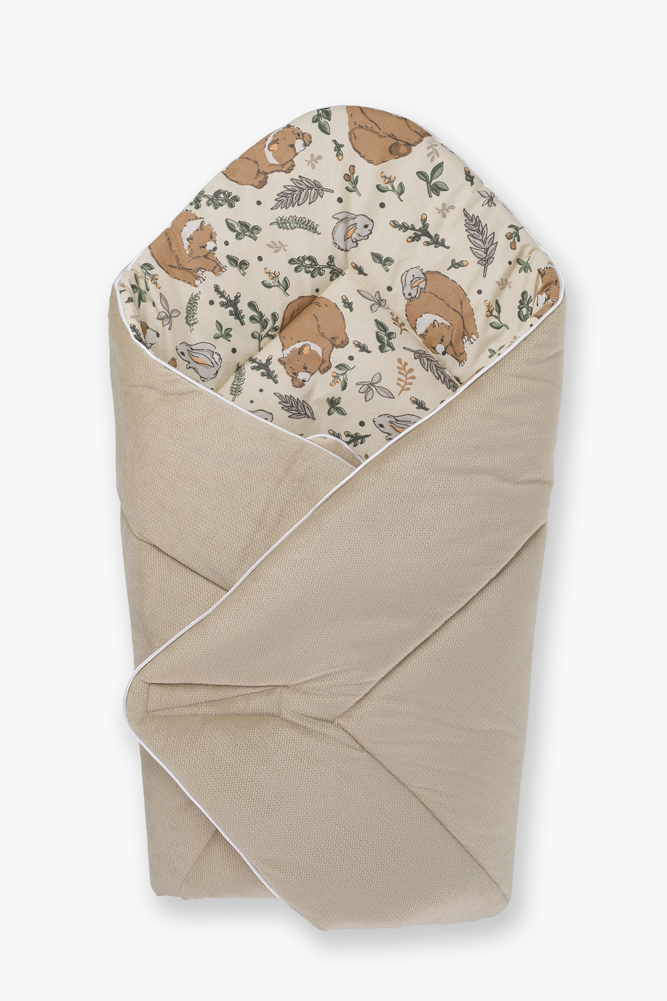 Zapewnij swojemu maluszkowi komfort i bezpieczeństwo dzięki temu eleganckiemu rożkowi. Delikatny wzór niedźwiadków i króliczków nadaje mu wyjątkowego uroku, idealnego dla niemowląt już od pierwszych chwil życia.