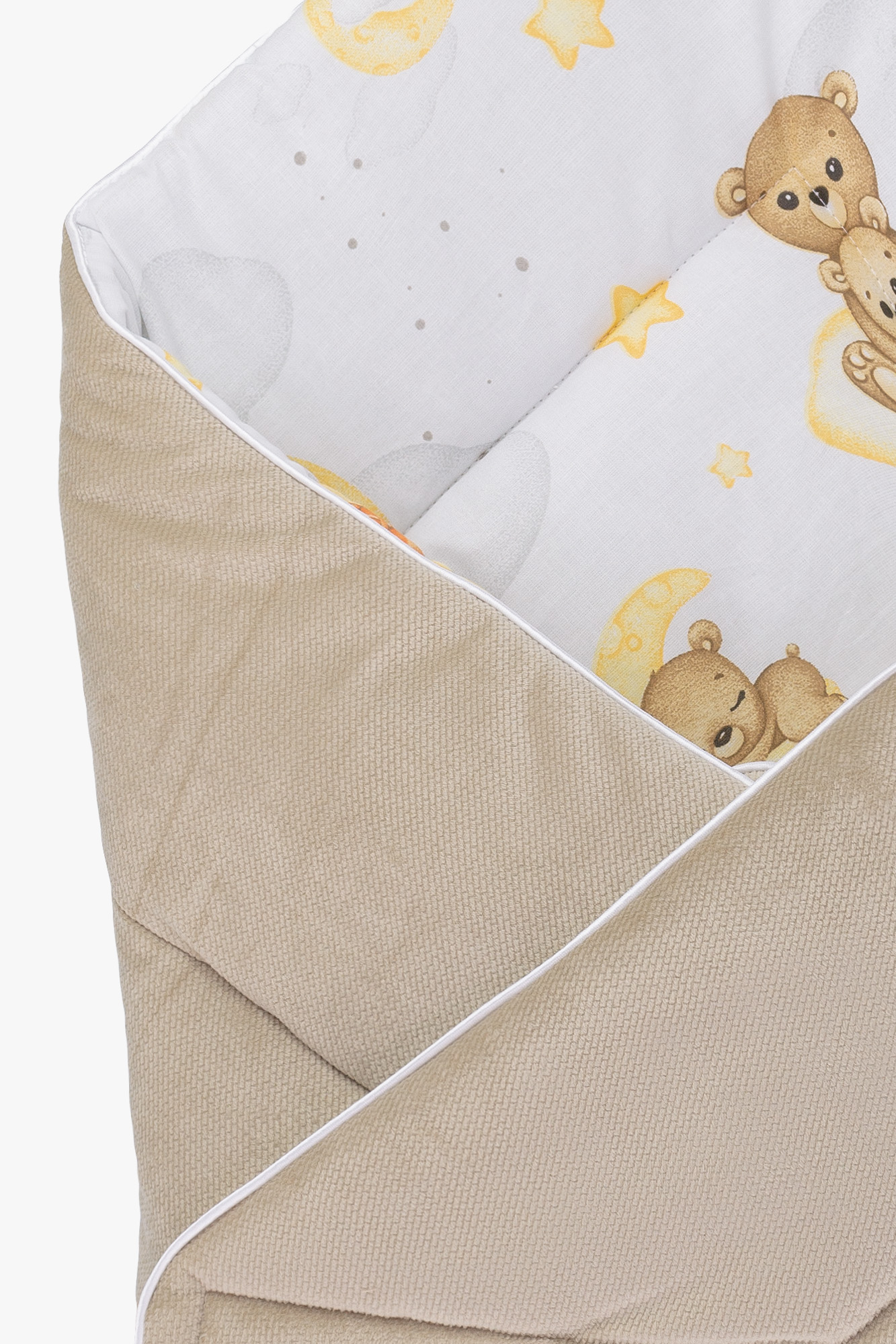 Beżowy rożek niemowlęcy z uroczym motywem misiów