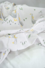 Delikatny wzór z uroczymi gąskami, który nadaje dziecięcemu pokoikowi przytulny klimat. Materiał oddychający i zapewniający komfortowy sen maluszka.