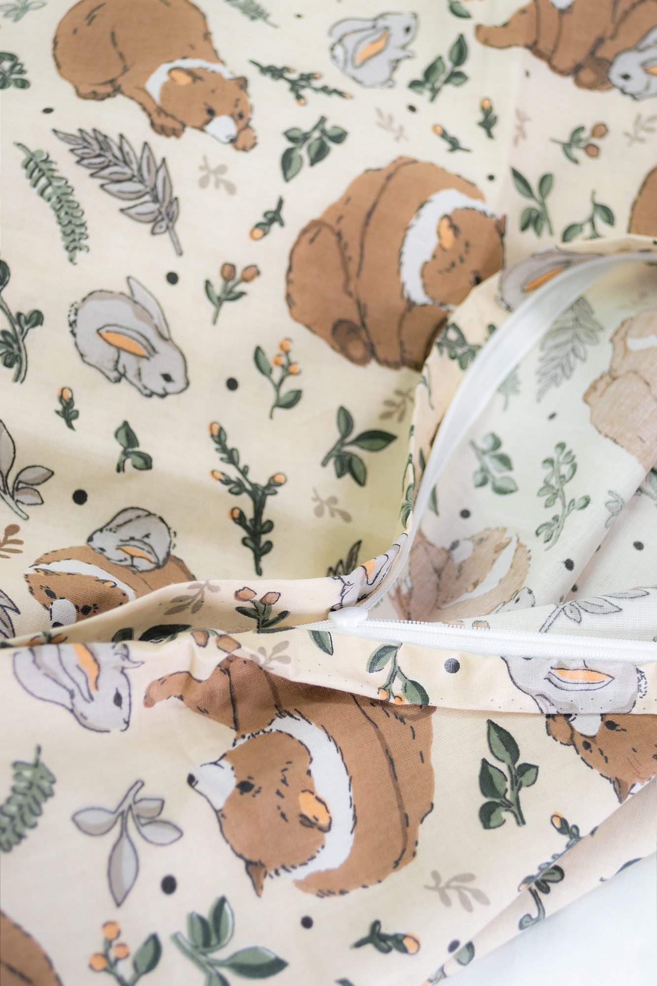 Delikatny wzór z uroczymi zwierzątkami, który nadaje dziecięcemu pokoikowi przytulny klimat. Materiał oddychający i zapewniający komfortowy sen maluszka.
