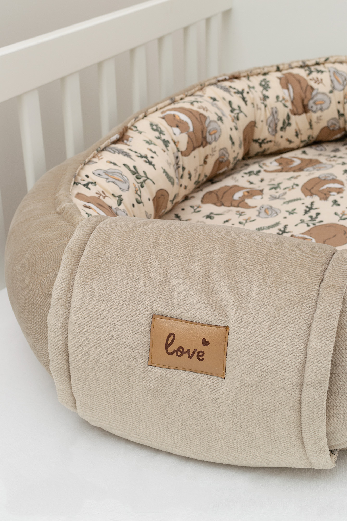 Zapewnij swojemu maluszkowi komfort i bezpieczeństwo dzięki uroczemu gniazdu niemowlęcemu z motywem niedźwiadków! To idealne rozwiązanie, które tworzy przytulną przestrzeń do odpoczynku, snu i zabawy, od pierwszych chwil życia.