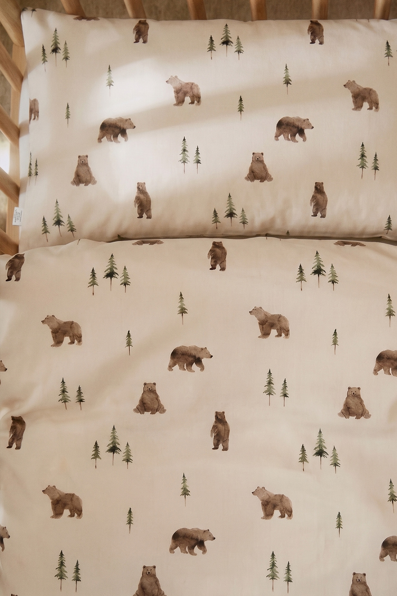Urocza pościel dziecięca z leśnym motywem misiów i drzew, utrzymana w ciepłej, naturalnej kolorystyce. Wykonana z miękkiej, oddychającej tkaniny, zapewnia komfortowy i spokojny sen maluszka. Subtelny wzór inspirowany naturą wprowadza do pokoju przytulny, harmonijny klimat. Delikatna dla skóry dziecka, idealna do codziennego użytku już od pierwszych dni życia.