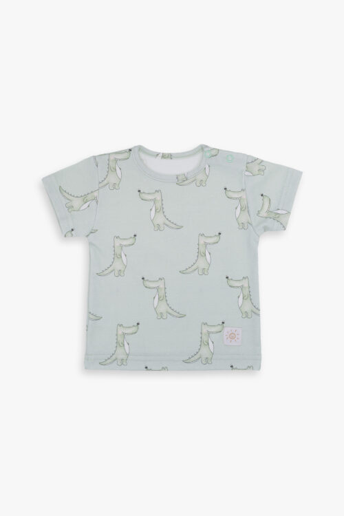 Koszula z krótkim rękawkiem z 100% kolorowej bawełny. Na ramionku zapinana na bezniklowe napki. W sam raz na nadchodzące lato dla maluszka