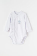 Body niemowlęce z długim rękawem – białe z nadrukiem słonika