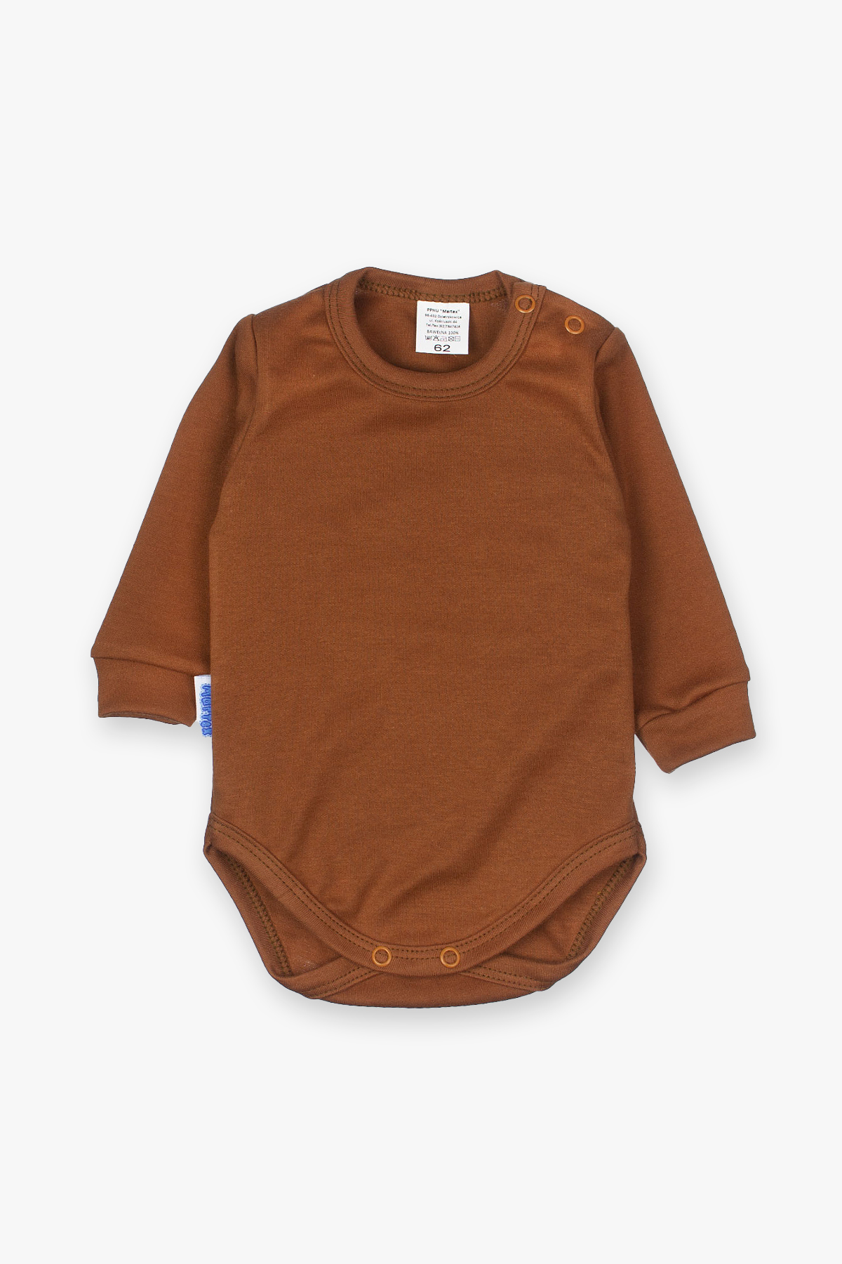 Body niemowlęce z długim rękawkiem z 100% bawełny, zapinane na ramionku i w kroku na napki.