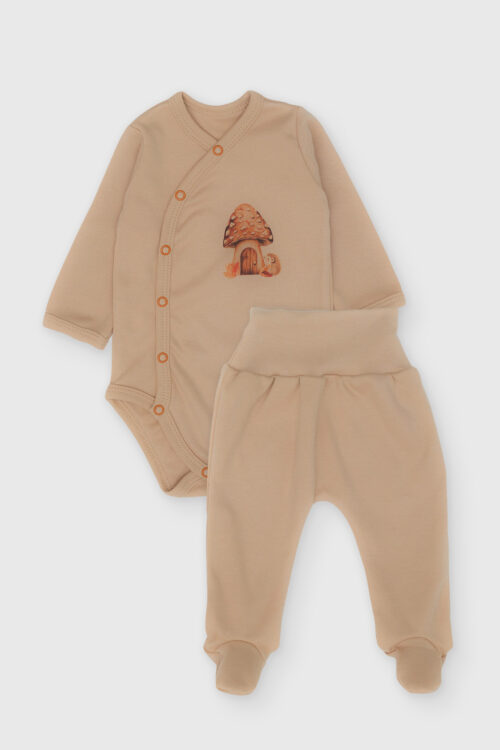 Ten uroczy zestaw dla niemowląt, składający się z body kopertowego i półśpiochów, został stworzony z myślą o komforcie i bezpieczeństwie Twojego maluszka. Wykonany z miękkiej, oddychającej bawełny w ciepłym odcieniu beżu, jest idealny na każdą okazję.