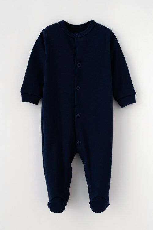 Niemowlęcy pajacyk do spania z gładkiej miękkiej 100% bawełny. Cały zapinany na napki. Rękawki zakończone mankiecikiem.