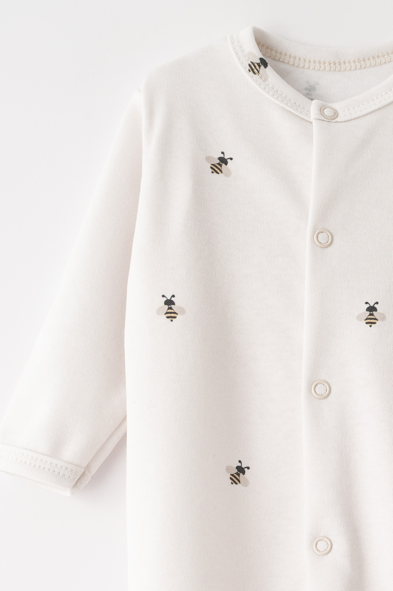 Subtelna estetyka: Delikatny nadruk w małe pszczółki sprawia, że ubranko wygląda uroczo i stylowo. Neutralna kolorystyka (unisex) sprawdzi się idealnie zarówno dla chłopców, jak i dziewczynek.