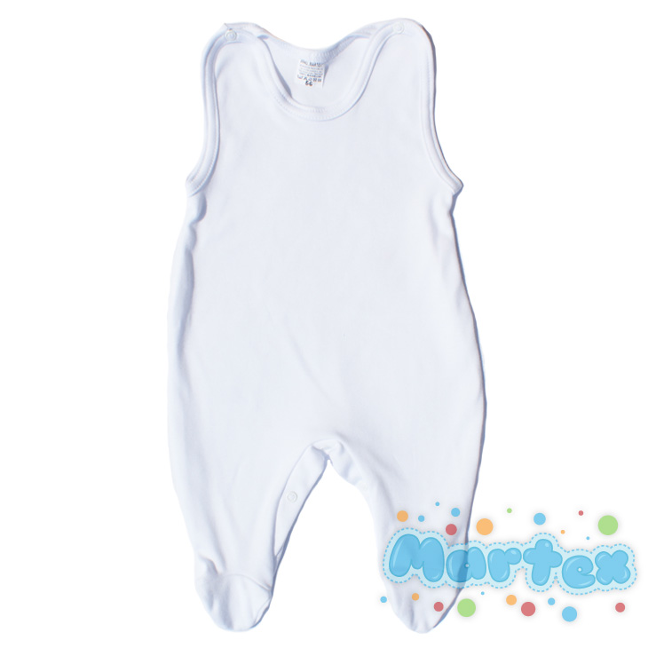 Śpioch wykonany ze 100% gładkiej białej bawełny. Na ramionkach i w kroczku zapinany na napki.