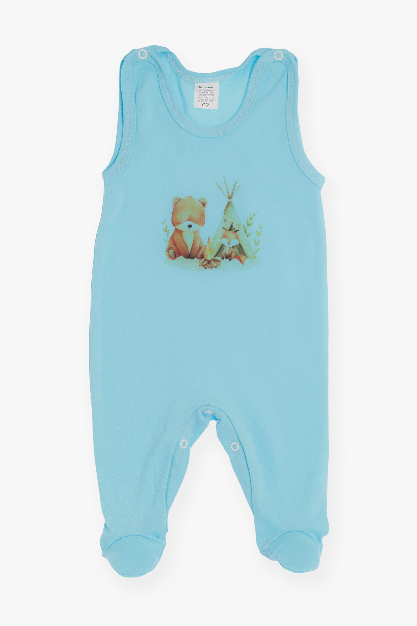 Śpioch niemowlęcy wykonany ze 100% baweły. Zapinany na napki. Ozdobiony kolorową malowanką