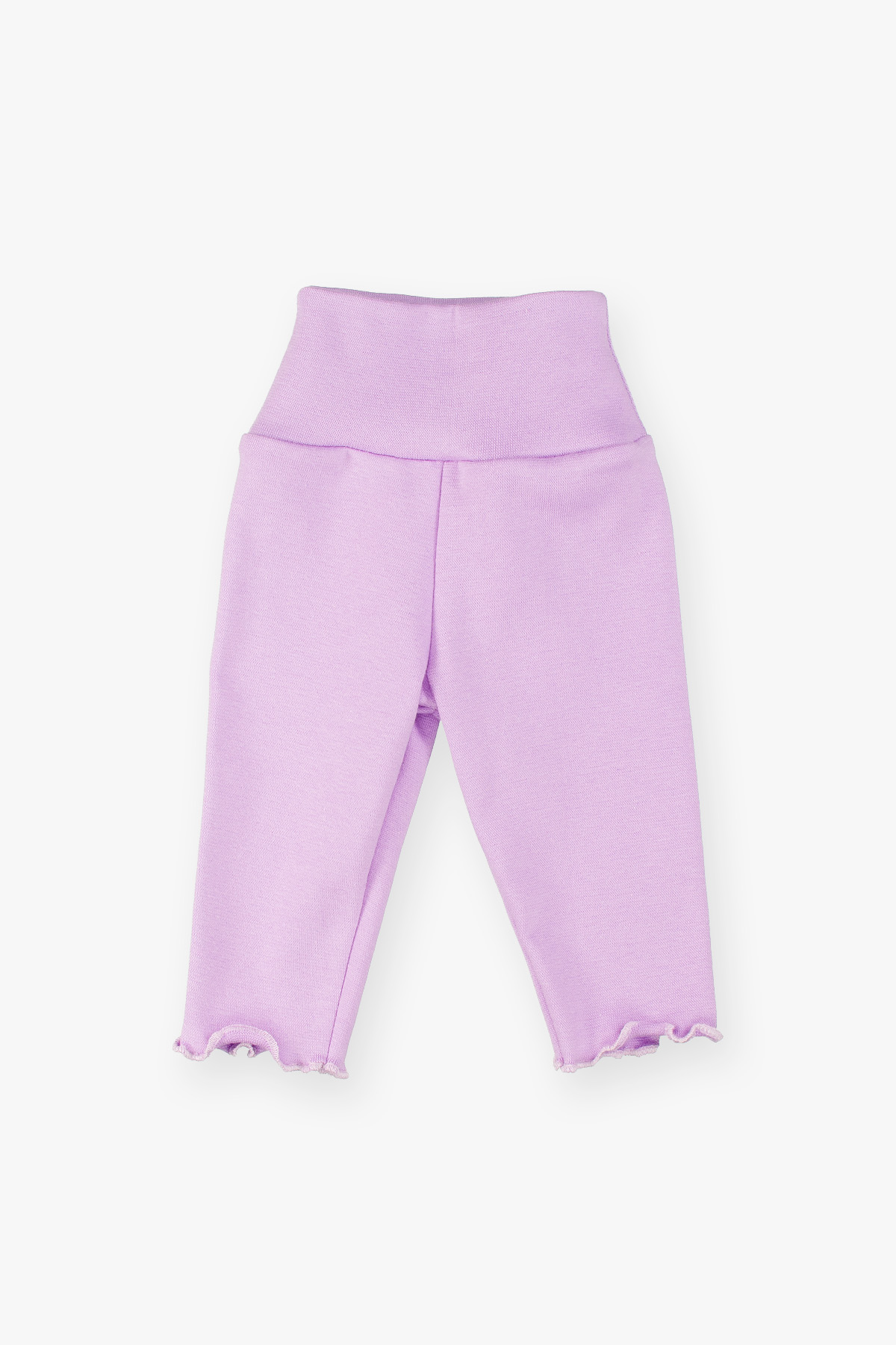 Spodenki niemowlęce na dziewczynkę z Bawełny z polyestrem. 98% bawełny 2% polyestru z szerokim pasem który nie uciska brzuszka, nogawki wykończone mereszką.